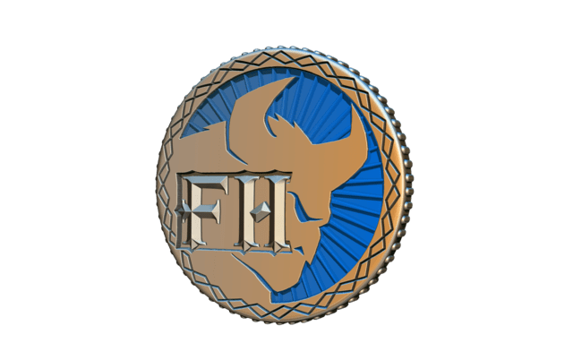1 x Frosthaven Challenge Coin (38mm metal coin with colored enamel highlights, featuring symbology and coloring from Frosthaven.)